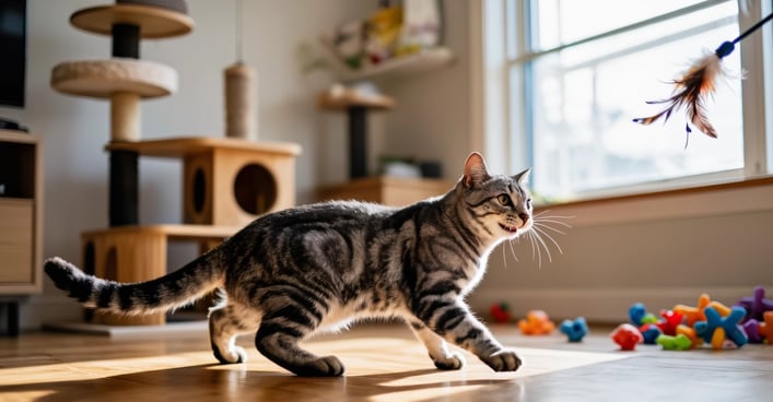 Less Destructive Behavior: A well-played cat is less likely to scratch furniture.