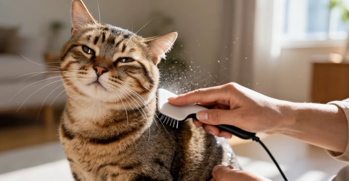 Approach: Let your cat sniff the tools first. Start with areas they enjoy (often cheeks/chins). Always brush in the direction of hair growth with minimal pressure.