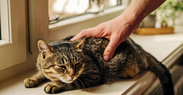 Acaricia a tu gato diariamente, sintiendo enredos, sensibilidad o puntos calvos.