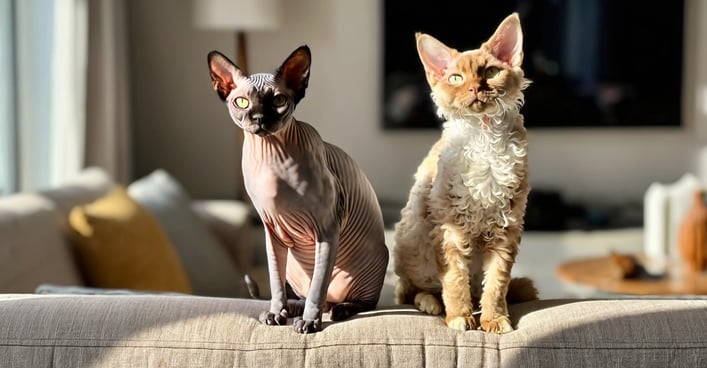 Necesidades de Interacción: ¿Quieres una sombra constante (Sphynx) o un amigo juguetón, ligeramente más independiente (Devon)?
