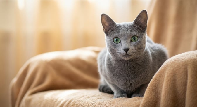 Découvrez le fascinant Bleu Russe, chat d’origine russe à la robe d’argent, dont l’histoire maritime commence à Arkhangelsk et séduit depuis 1860.